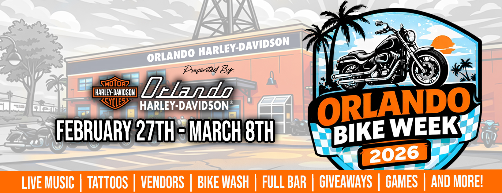 No other dealership or vendor offers Genuine Harley-Davidson branded Orlando Bike Week merchandise. We’re stocked to the brim with t-shirts, pins, magnets, hats, shot glasses, challenge coins, poker chips, stickers & more. Forgot your rain gear? We have plenty of that, too! Visit us online or at the dealership to shop for exclusive merchandise.